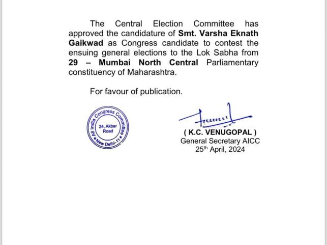 Mumbai: Congress has nominated Varsha Gaikwad as the candidate for the Mumbai North Central seat. Varsha also serves as ...