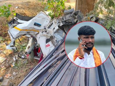 Maharashtra: A tragic accident occurred around 1:15 AM on Monday, March 23, 2026, midnight at Karkhel Khurd on Beed-Ahilyanagar State Highway. The incident took place when a private passenger bus overtook a container truck that was traveling from Pune to Latur, carrying a load of iron rods; this caused the driver to lose control of the vehicle, resulting in the container overturning.
