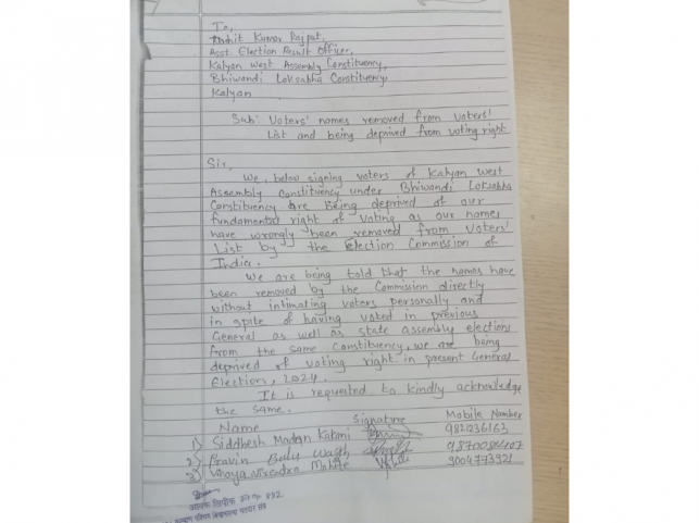 Several voters in the Kalyan West Assembly Constituency, part of the Bhiwandi Lok Sabha constituency, have voiced severe anguish and outrage after being deprived of their fundamental right to vote. Complaints have surfaced regarding the wrongful removal of many voters' names from the electoral rolls in Kalyan West.