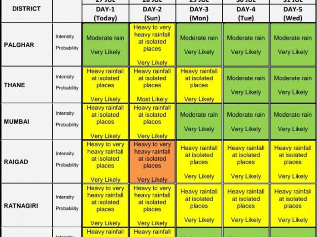 In addition, an 'orange' alert has been issued for neighboring districts including Raigad, Ratnagiri, Sindhudurg, Pune, and Satara for Saturday, where heavy to very heavy rainfall is expected at isolated locations. However, the IMD has confirmed that no districts in Maharashtra will be under an 'orange' alert from July 28 to 30.