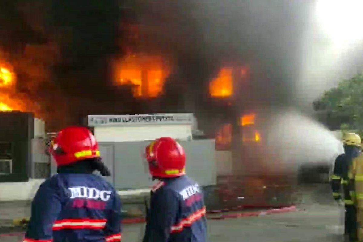 A major fire broke out at a chemical manufacturing unit in Pawane MIDC, Navi Mumbai, on Thursday morning. The incident took place at Mehk Chemicals Private Limited, situated at W-6, TTC Industrial Area, Pawane.At around 6:30 am, the Pawne MIDC Fire station responded promptly, dispatching five fire engines from Vashi, Nerul, Rabale, Koparkhairane, and MIDC to the site to bring the situation under control.