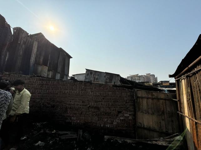 Residents of the Azad Nagar slum described the fire that erupted around 4:30 a.m. today at Mira Road as "politically motivated." The blaze swiftly swept through the narrow alleys, engulfing numerous huts and shops, resulting in one fatality and leaving five individuals critically injured. Muhammed Ibrahim, who lost his home in the fire, voiced suspicion regarding the incident. "A few people received eviction notices just 4 to 5 days ago, and now the entire basti is ablaze. I'm not saying it's a conspiracy, but something seems suspicious," said Ibrahim, a resident of the area for two decades. "My family migrated from Uttar Pradesh and has been here for over 35 years." Like Ibrahim, at least 150 families lost their homes, including both legal and illegal dwellings. "Six months ago, we received a notice, but we decided to stay and deal with it when the time came," Ibrahim added. Salim Hasan Manihar, another local resident, echoed Ibrahim's sentiments, describing the fire as "completely politically motivated." "The fire broke out at 4 a.m., and the fire brigade didn't arrive until 6 a.m. What were they doing for two hours? By 10 a.m., the entire basti was reduced to ashes," said Manihar. "Now, this land will likely be cleared for the construction of a bus depot, government garden, or some other structure."