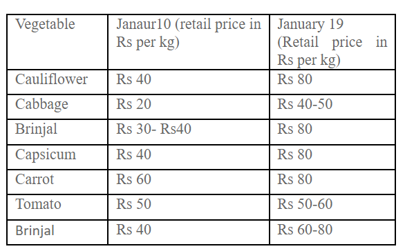 There is a sharp drop in the arrival of green vegetables and traders at vegetable markets of Agriculture Produce Market Committee say the dip in temperature at many places affected the supply. “Less number of farmers are bringing vegetables due to challenges in transportation,” said Prasad Mali, a trader at Vegetable market in APMC.