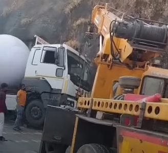 A gas tanker rammed into the side barricade of Amrutanjan Bridge in the Borghat stretch on the Mumbai-Pune Expressway on February 23. The tanker met with this accident due to break failure. The police and authorities removed the vehicle from the road immediately after they were informed about the accident. The traffic movement remained smooth on the Mumbai-Pune Expressway. This is the second gas tanker accident reported on the expressway. The tanker was carrying 21 tonnes of propylene gas. After noticing that the brakes had malfunctioned while descending a steep stretch, the driver reacted promptly and deliberately directed the vehicle toward a roadside retaining wall to stop it. The collision brought the tanker to an immediate halt, averting the risk of it speeding uncontrollably along the hazardous bend. Fortunately, no injuries or fatalities were reported in the incident.