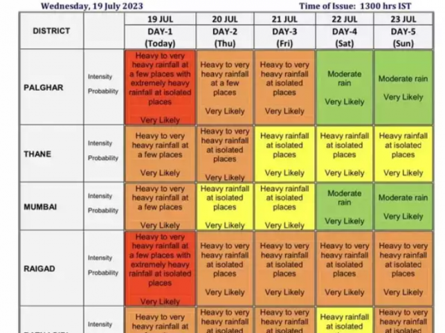 Indian Meteorological Department (IMD) has issued yellow alert for Mumbai and Orange alert for Thane, Palghar, Raigad and Ratnagiri districts on July 20.