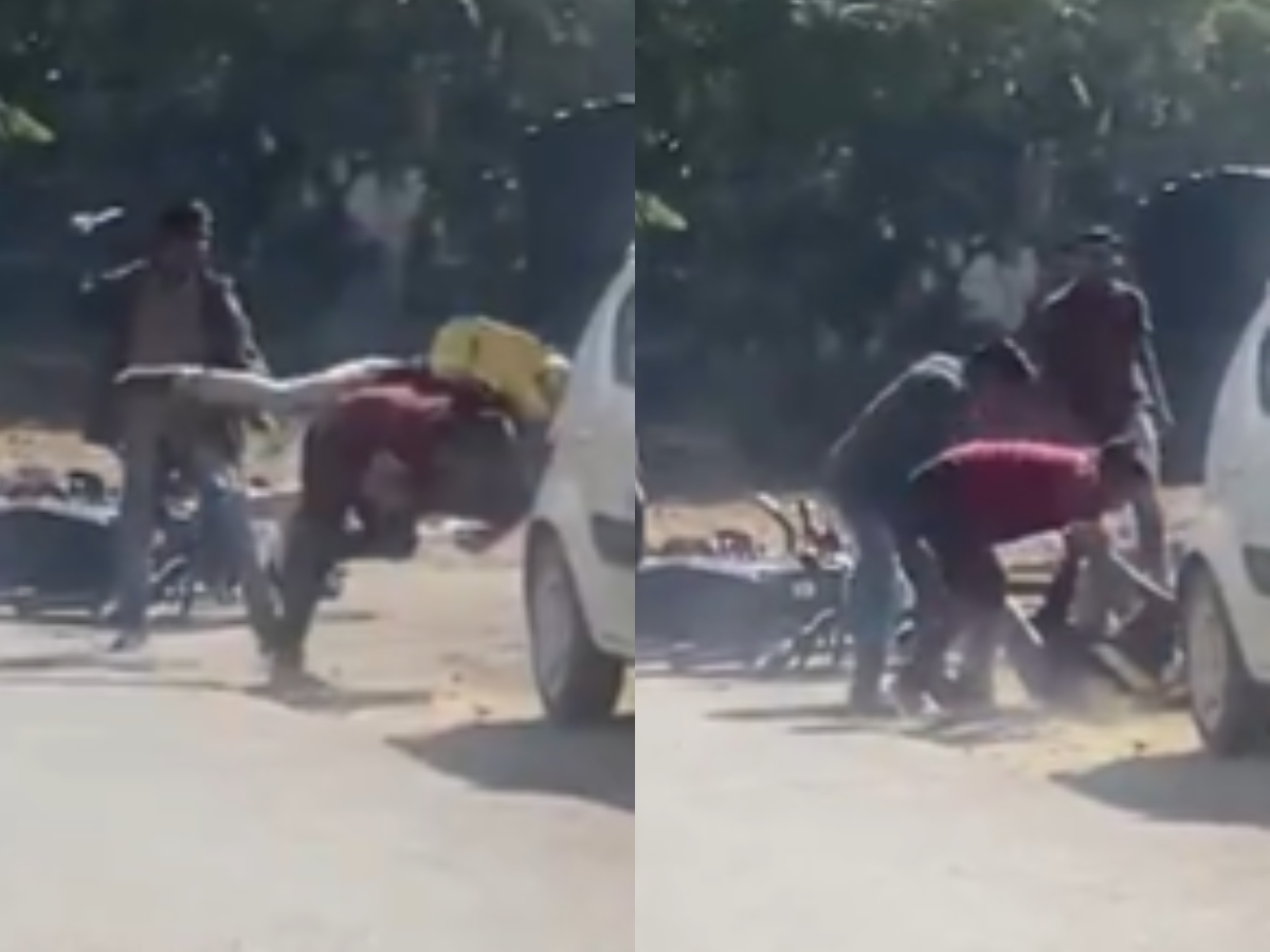 Footage shared by deadly Kalesh shows, delivery guy being brutally assaulted by a group of people. Caption reads, “Road rage kalesh: Blinkit delivery guy got brutally beaten up by car driver and co-passenger over minor crash." Video shows a Blinkit delivery agent being pulled by a man after his bike is seen on the road. The man, presumably the car owner, drags the agent away from his car, throws him to the ground, and repeatedly punches and slaps him. Another man arrives and strikes the delivery worker with a stick.