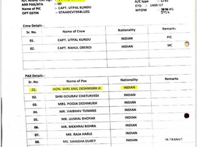Now, a document reveals that Anil Deshmukh flew from Nagpur to Mumbai on February 15. Eight people, including Deshmukh, have made the journey in this flight, including Pooja Deshmukh. He came to Mumbai from Nagpur by a private plane. Anil Deshmukh also said in a video that he was in isolation at his home in Nagpur from February 15 to February 27. However, Home Minister Deshmukh is once again in trouble due to the flight documents from Nagpur to Mumbai.