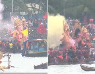Lalbaugcha Raja Visarjan 2025: Lakhs of Devotees Gather at Girgaon Chowpatty as Mumbai Bids Farewell to Ganpati Bappa (Watch Video)