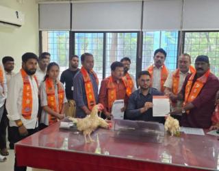 MNS Stages Unique Protest in Nagpur, Gifts Poultry Birds to NMC Officials Over Illegal Meat Market