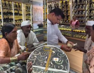 Chhatrapati Sambhajinagar: 95-Year-Old Beggar Buys Mangalsutra for Wife With Savings; Heartwarming Video Goes Viral