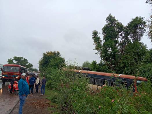 According to the information received, the State Transport (ST) bus travelling from Pune to Lasalgaon was en route to Nashik on the Pune-Nashik highway. The driver, Nivrutti Rambhau Handge, was heading towards Narayangaon. The road had become slippery due to heavy rainfall. As the ST bus was passing near the village of Eklahare, Driver Nivrutti Rambhau Handge noticed a steering failure. Despite the challenging situation, he managed to regain control of the bus. However, the bus veered off the road and came to a halt in a ditch, narrowly avoiding a major accident thanks to a large rock present at the site. This fortunate occurrence prevented a potential tragedy for approximately 75 to 80 passengers on board the ST bus.