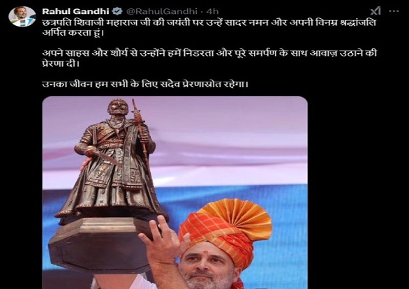 Chhatrapati Shivaji Maharaj's Jayanti is being celebrated with great enthusiasm across the country, with political leaders and Shivaji’s admirers extending their tributes. However, Congress leader and Leader of the Opposition, Rahul Gandhi, has sparked a new controversy with his tribute to the legendary Maratha king on social media. In his tweet on X (formerly Twitter), Rahul Gandhi offered his "Shraddhanjali" (homage) to Chhatrapati Shivaji Maharaj instead of using the term "Adaranjali" (respectful tribute), which is typically used on such occasions. This has drawn criticism, especially from those who believe that it shows unintentional disrespect toward a figure held in great esteem, particularly in Maharashtra.
