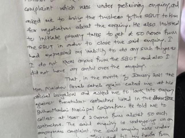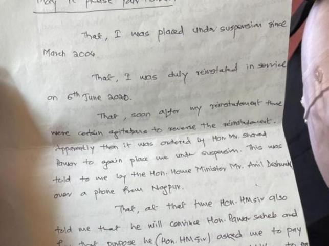 The alleged letter claims, NCP chief Sharad Pawar was against Vaze's reinstatement into Mumbai Police in 2020 and wanted it to be revoked. To this, then Maharashtra Home Minister Anil Deshmukh allegedly told Sachin Vaze that if he pays Deshmukh Rs 2 crore, he will convince Sharad Pawar to allow Sachin Vaze back into the force.