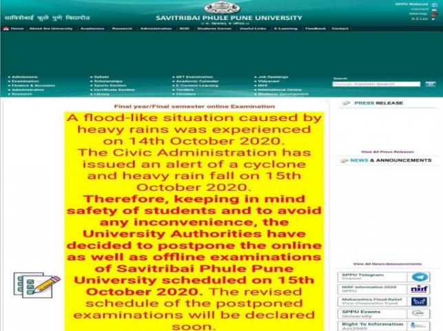 Savitribai Phule Pune University has postponed the online and offline examinations scheduled for today, due to heavy rainfall alert. Information regarding this has been published on the website of the university.