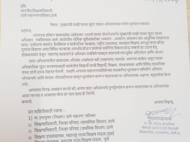 Jalinder Mane Thirani School Principal told LokmatTimes.com, "On 21st February 2024, TMC officials visited our school for the 2nd phase of evaluation but did not stayed for more than 15 minutes. They were least bothered to take an overview of all the initiatives. We expected that our school would at least come at the municipal level in the evaluation as we persistently implemented most of the activities from the 30 initiatives, like Maha vachan abhiyan, Swachhta Monitor, plastic-free abhiyan etc. even before the campaign was declared.”