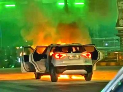 City police and fire department officials, led by Suraj Rathod, rushed to the scene and brought the fire under control. Salve was alone in the car at the time. Witnesses said timely action by Salve, who exited the vehicle quickly, prevented any harm.