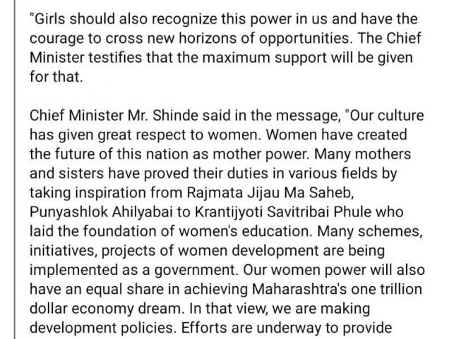 Maharashtra Chief Minister Eknath Shinde extended his greetings on Women's Day, Taking to Facebook CM said, Our women power ...