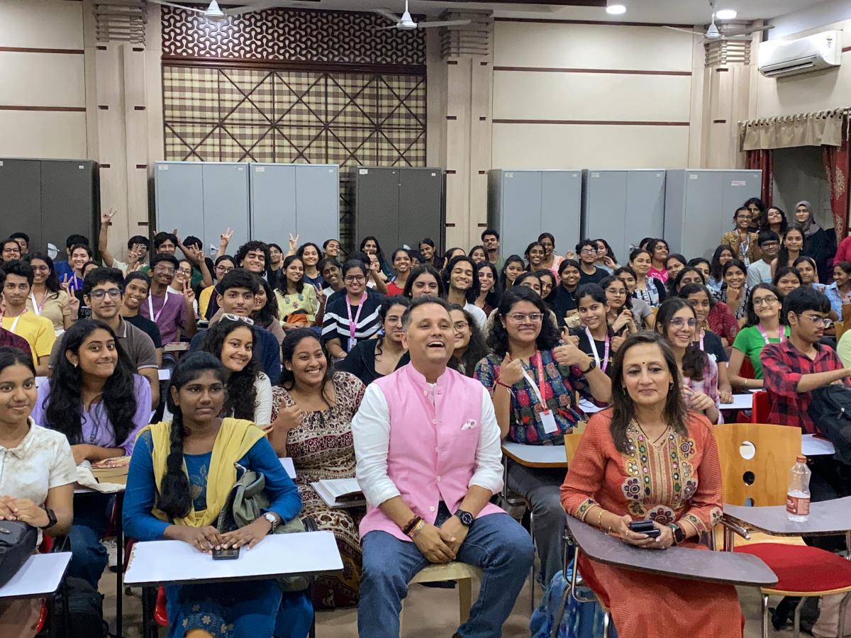 The program began with an engaging interview where students learned about Amish’s personal and professional journey. He spoke openly about his entry into the literary world and his experiences after college. The session included a rapid-fire round and a trivia segment about the college, during which Amish shared some entertaining anecdotes. He also addressed students' questions, providing insightful answers with illustrative examples. In the discussion, Amish explored the contrasts between ancient Indian and modern mindsets, as well as cultural and ideological differences between Western countries and India. He proudly highlighted the inclusivity of Indian society, stating, “Viewing things only in black and white is a modern trend. Our ancestors had a more nuanced perspective and recognized the shades in between. India is the perfect country for storytelling because of our open-mindedness and ability to understand diverse viewpoints.”