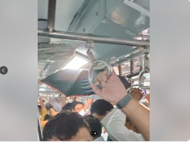 A commuter carried an open umbrella into the Mumbai local train, and he was unable to turn it off. Another traveller clicked a photograph of the incident and posted it online. Social media users shared a picture of the man in the packed Mumbai AC local's coach with the open umbrella. As other passengers watched, the man was seen standing peacefully with the umbrella unfolded in the picture. The picture seemed to have been taken by another commuter in secret. The local train appeared to be crowded in the photo, with passengers attempting to navigate the constrained area before encountering the unforeseen barrier of an umbrella. Take a look at the post here: