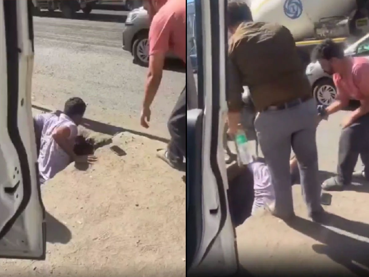 A video shared on X shows a man struggling to come out of a drain along a highway where he fell with a child. Passersby and locals helped him and pulled him out of the drain. A man who learned to record the incident can be heard saying that the incident took place near Axis Mall.
