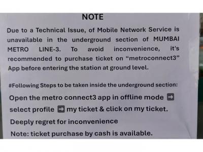 The second phase of the Mumbai Metro Line 3, also known as Aqua Line, from BKC to Acharya Atre Chowk, Worli, was recently opened for passenger service. Since all the stations on Metro Line 3 are underground, passengers have complained about losing mobile network connectivity as soon as they enter the stations. Due to the lack of mobile network coverage in the tunnels, commuters are struggling to purchase metro tickets using their mobile phones. In response to this, Mumbai Metro-3 has issued guidelines for passengers.