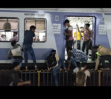 The video, shared by a social media account, captures a tense moment as several individuals are seen perched on railings dangerously close to an incoming train. The gap between the men and the train appears alarmingly small, where even a minor misstep could have led to a tragic accident. As the train approaches the platform during peak hours, the individuals begin boarding from the opposite side, indicating an attempt to bypass the usual entry points. The platform is visibly crowded, further reinforcing the intensity of rush-hour travel. This incident underscores the extreme lengths commuters may go to in order to navigate Mumbai’s strained public transport system.