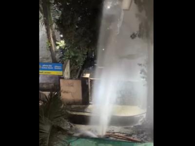 According to the X post, the incident occurred in Shastri Nagar of Andheri West during the road concrete work. The damaged water pipeline throws water into the air up to the 3rd floor.