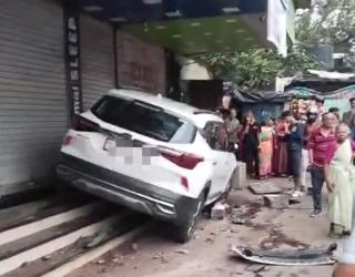 Ghatkopar Accident: Car Hits Divider and Crashes Into Shops on LBS Road, Three Pedestrians Injured