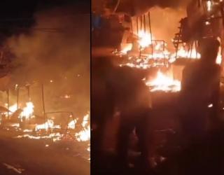 Mumbai: Massive Fire Breaks Out at Wooden Scrap Godown in Malad East (Watch Video)
