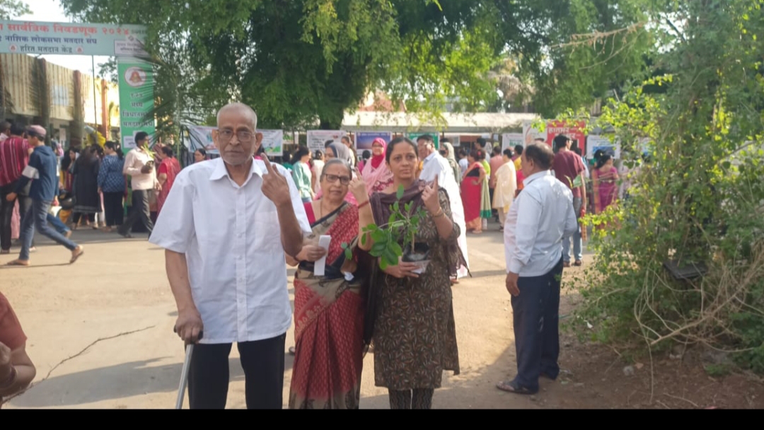 One standout effort by the NMC is the introduction of the "Harit Voting Centre" at the Bajarang Wadi polling booth. This eco-friendly concept, situated at School No. 65 in Bajarangwadi, offers voters a unique incentive: a sapling for every vote cast. The Harit Voting Centre is adorned with vibrant banners, images, and slogans advocating for environmental conservation, creating an inviting atmosphere for voters. This innovative approach not only promotes voter participation but also underscores the importance of preserving the environment.