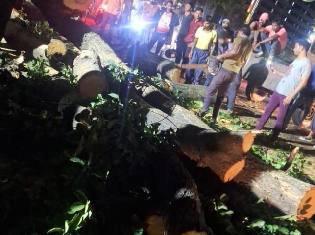 Fire brigade personnel arrived swiftly with to tackle the situation. The tree removal work is currently ongoing at a rapid pace to clear the blocked roads and restore normalcy.
