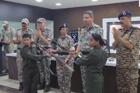 The group, which included six women, handed over weapons such as an AK-47, two SLRs, and a BGL (barrel grenade launcher), signalling their decision to embrace the rehabilitation policy offered by the central and state governments.