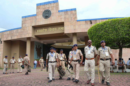 Bhopal, Dec 1 The five-day Winter Session of the Madhya Pradesh Vidhan Sabha started with vociferous protests and a novel play by the Opposition members in and outside the House on Monday.