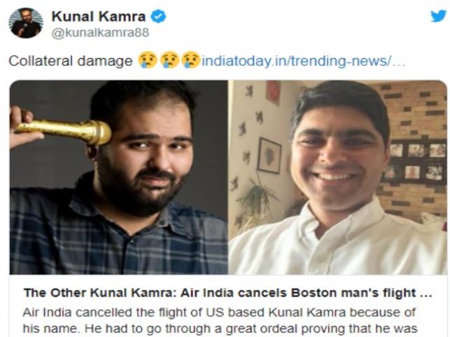 Air India mistakely cancels ticket of the wrong Kunal Kamra