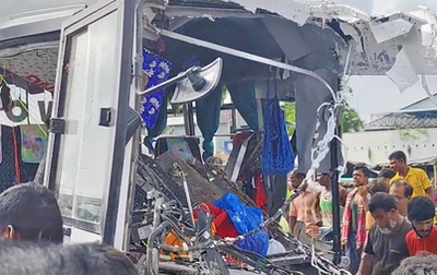 A passenger bus travelling from Indore to Delhi collided with a chemical-laden truck moving ahead of it. The impact was so severe that the front portion of the bus was completely mangled.