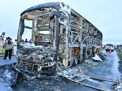 Deputy Inspector General of Police Koya Praveen said the fire started from the bike. “The fuel tank of the bus is intact. The fire started from the bike’s fuel tank. As the material under the bus was highly combustible, the fire spread rapidly,” he said.