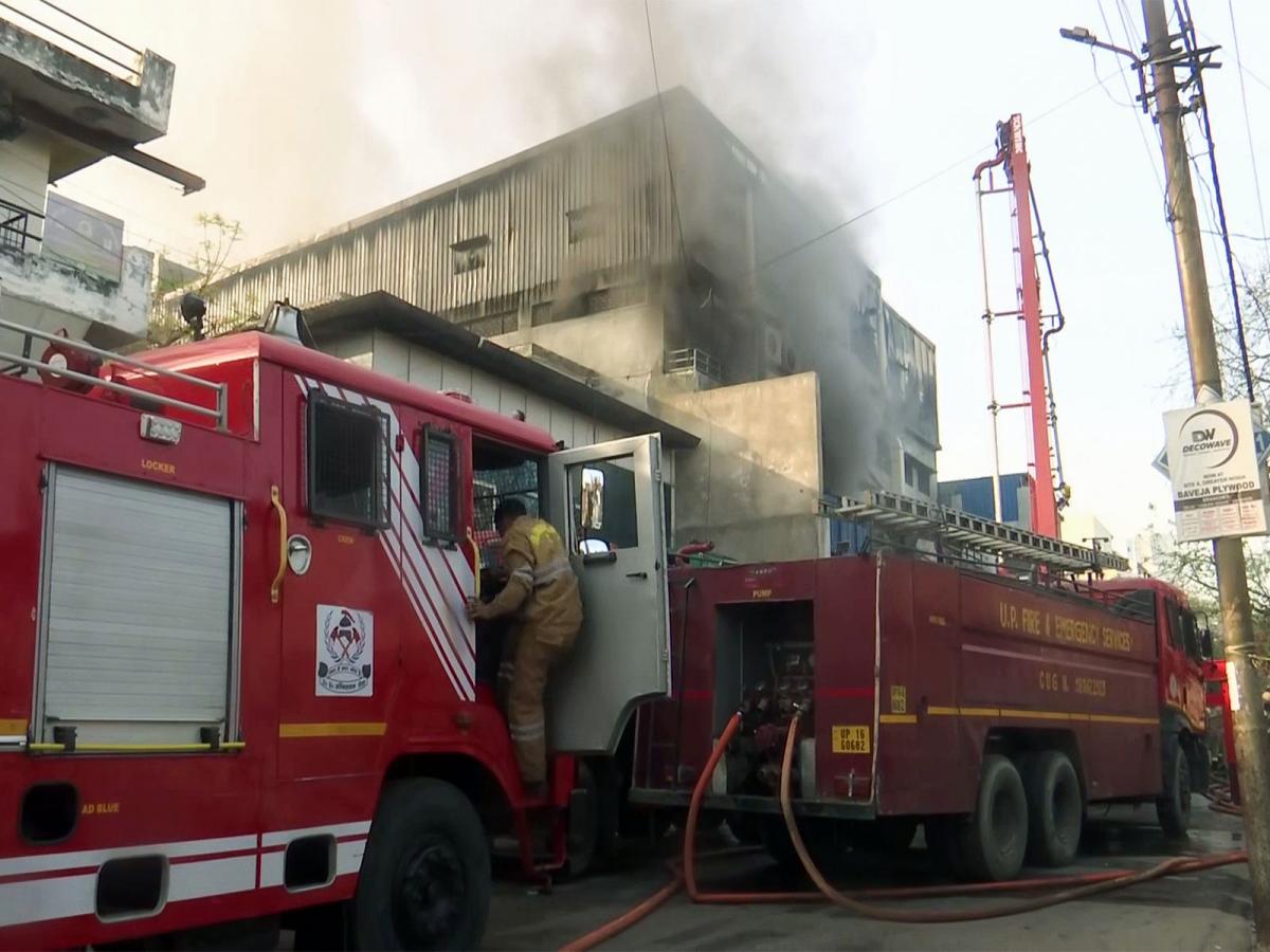 Firefighters, along with police personnel, are trying to control the blaze using three fire engines. Thick smoke and intense flames have made it difficult to bring the fire under control.