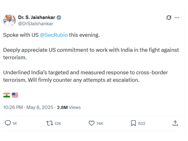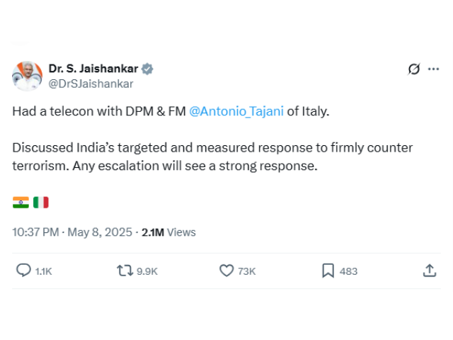 — Dr. S. Jaishankar (@DrSJaishankar) May 8, 2025