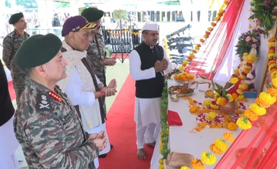 “The Indian Army, Air Force, and Navy are the three pillars of our strength. Their jointness is vital to meet every challenge. On this occasion, I congratulate our brave soldiers and officers on the success of 'Operation Sindoor',” Defence Minister Singh said, adding that weapons are not only symbols of power but also of respect for the soldiers who wield them.