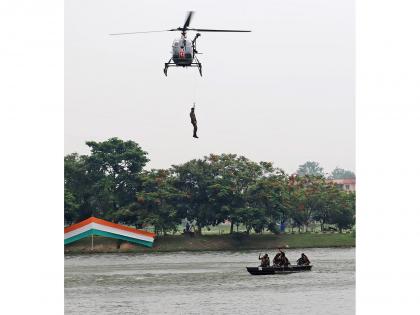 According to an official release, the Exercise Jal Rahat at IIT, Guwahati, showcased modalities of conduct of flood relief operations, the role of various agencies, the use of high-end technology and innovative means for conduct of rescue operations during floods.
