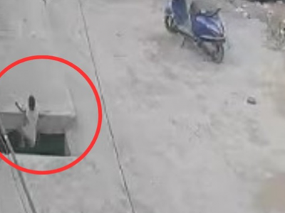 According to officials, CCTV footage captured the chilling moment when the toddler fell into the open drain, which had no protective cover.