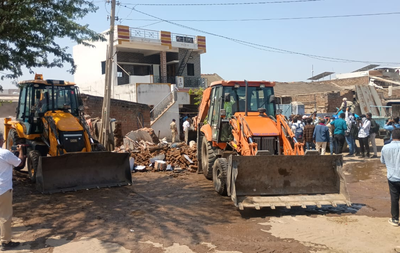 Ahmedabad, April 21 Administrative action intensified in Dhandhuka town of Ahmedabad district on Tuesday as authorities launched a demolition drive against illegal structures and disconnected electricity supply to two accused historysheeters, days after a fatal stabbing triggered violence and unrest in the area.