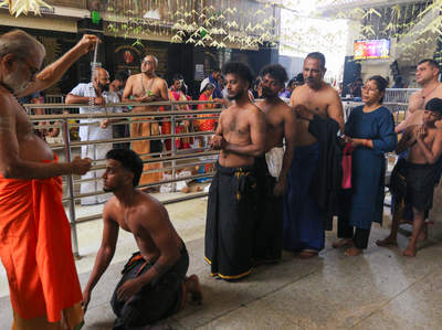 They appear only in black robes, don't shave or wear footwear during the course that culminates with a pilgrimage to Lord Ayyappa at Sabarimala in Kerala.