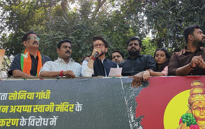 New Delhi, Feb 27 Workers of BJP Kerala Yuva Morcha staged a protest outside the residence of senior Congress leader Sonia Gandhi over the gold theft case related to the Ayyappa Temple in Sabarimala.