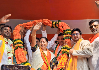 At the start of the road show in Kharagpur, Gupta invoked divine blessings for the party candidate. “We are starting our campaign rally from Ram Temple, and with the blessings of Goddess Durga, we will emerge victorious,” she said, as she addressed the voters from a campaign rath.