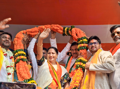 At the start of the road show in Kharagpur, Gupta invoked divine blessings for the party candidate. “We are starting our campaign rally from Ram Temple, and with the blessings of Goddess Durga, we will emerge victorious,” she said, as she addressed the voters from a campaign rath.