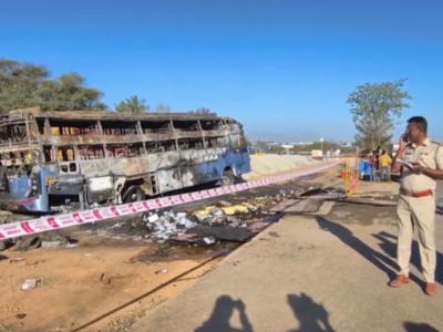 The incident occurred at approximately 1:45 AM near the Hanumanthapura–Kerekathiganur gate in Nelamangala taluk. The bus, operated by ‘Sanjana Travels’, was en route from Bengaluru to Kalaburagi with approximately 40 passengers on board when the driver lost control of the vehicle.