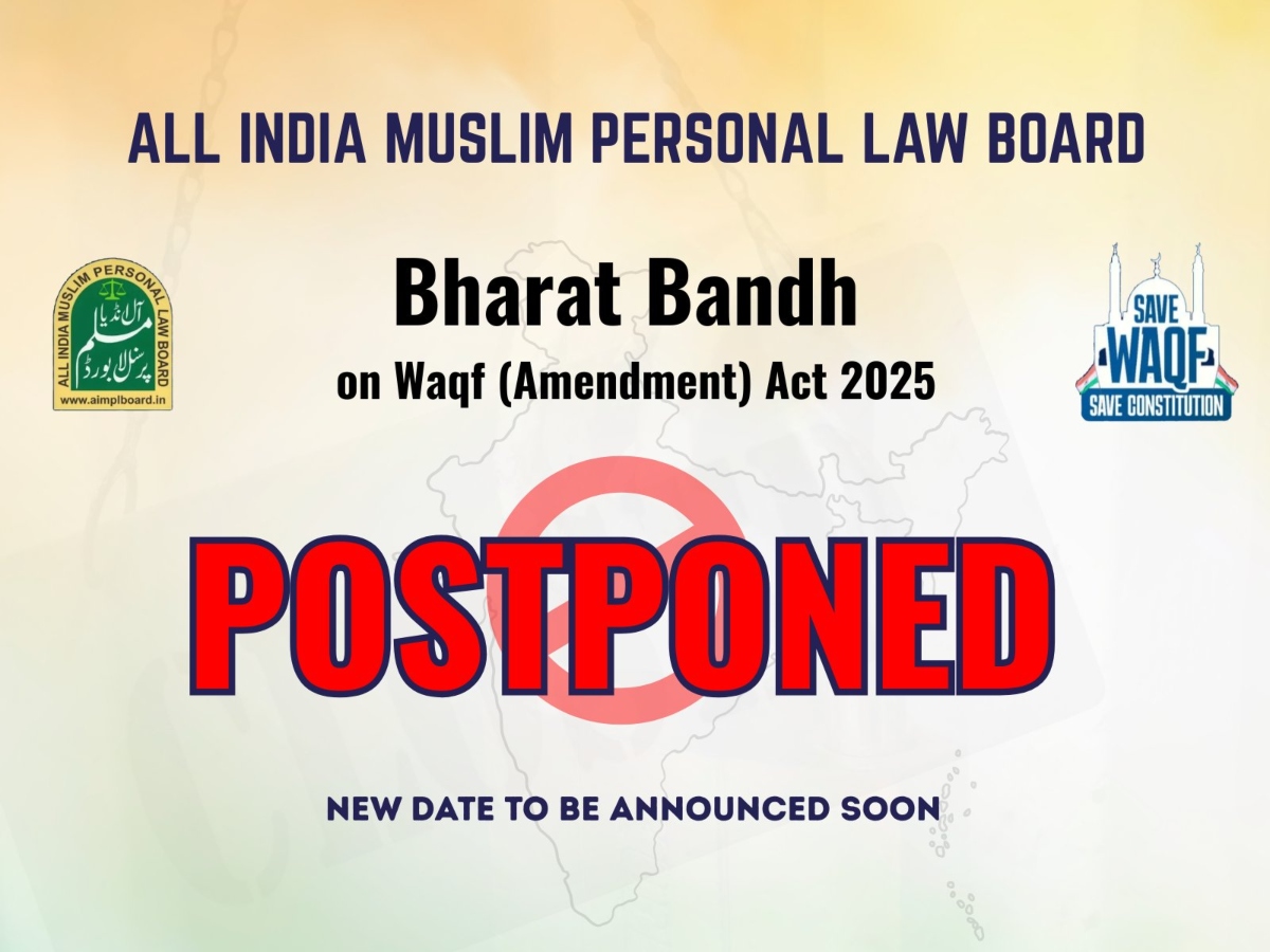 The announcement was made by AIMPLB General Secretary Maulana Fazlur Rahim Mujaddidi, who added that the new date would be communicated in due course. The decision to shift the bandh to another day was taken unanimously during an emergency meeting of AIMPLB office-bearers.
