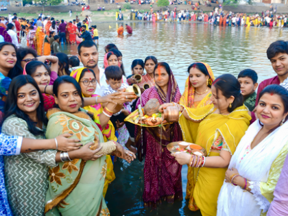 Similar devotional atmospheres were seen in other districts too, with people carrying baskets on their heads and the devotees offering prayers to the setting sun on the different riverbanks and ponds.