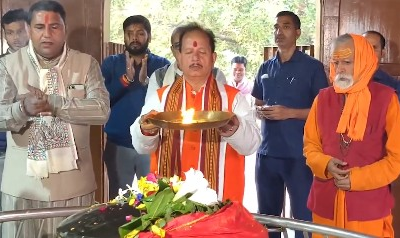 New Delhi, Nov 14 Ahead of the vote counting for the Bihar Assembly Election 2025, Deputy Chief Minister Vijay Kumar Sinha offered prayers at the Ashok Dham temple in Lakhisarai on Friday.